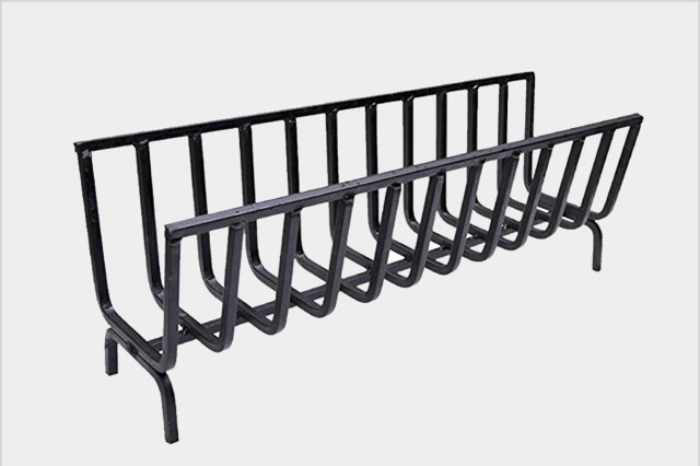 Produciamo una vasta gamma di brucialegna per caminetto in ferro battuto, forgiati verniciati di colore nero.